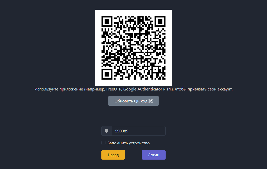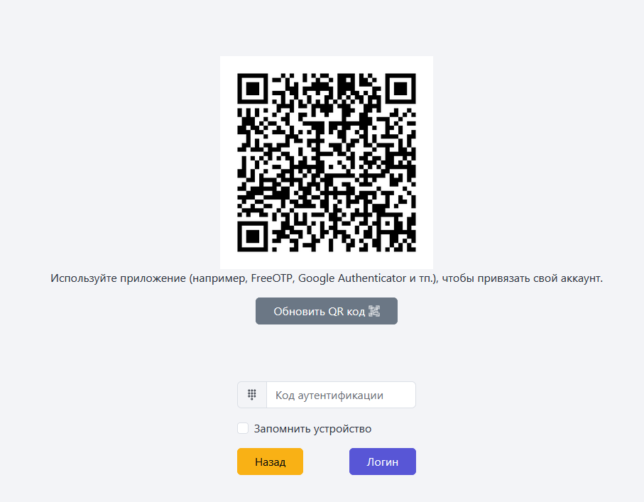 и отсканируйте QR-код, отобразившийся после ввода логина и пароля пользователя в форме авторизации