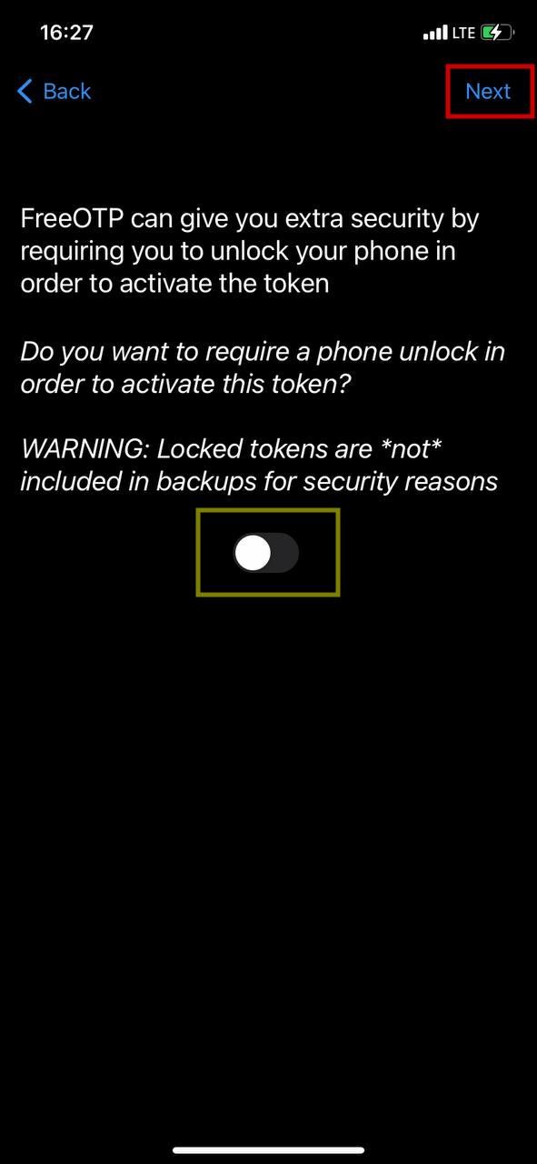 При необходимости включите дополнительную защиту FaceID или TouchID (переключатель в положение