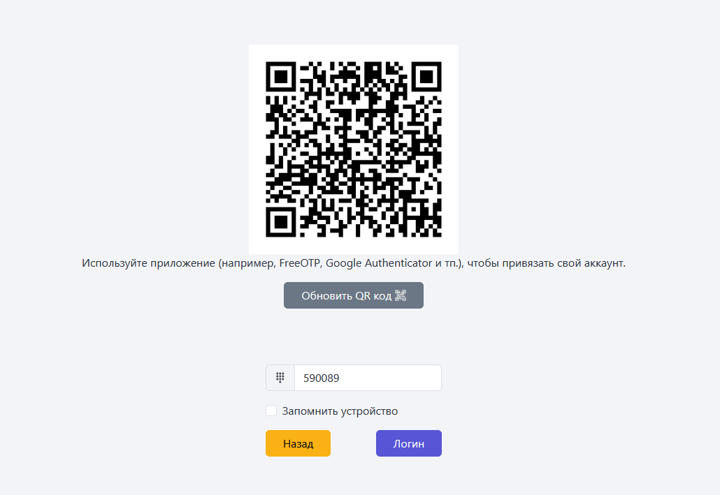 После ввода логина и пароля пользователь будет перенаправлен на страницу ввода кода TOTP, который генерируется в приложении (FreeOTP, Google Authenticator и пр.).
