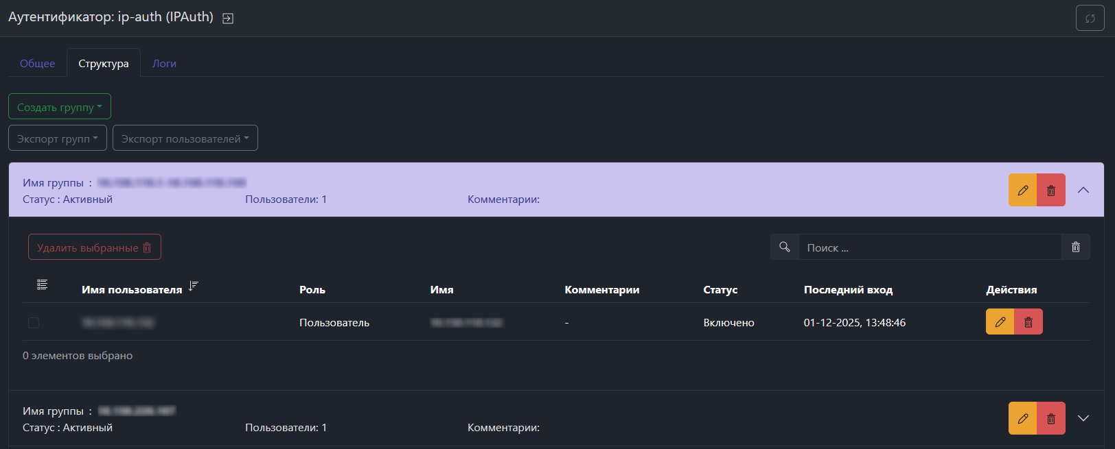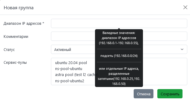 После сохранения группы пользователей диапазон IP-адресов будет не доступен для изменения.