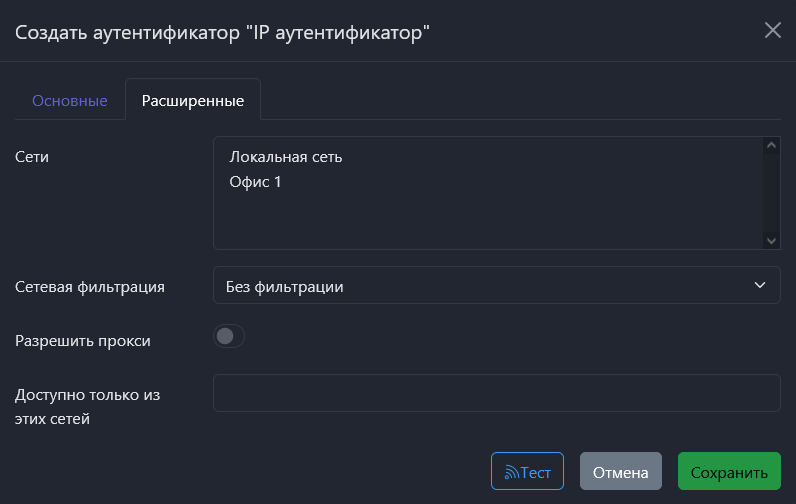 - Доступно только из этих сетей – вход с аутентификатором будет разрешен только из указанных IP-адресов