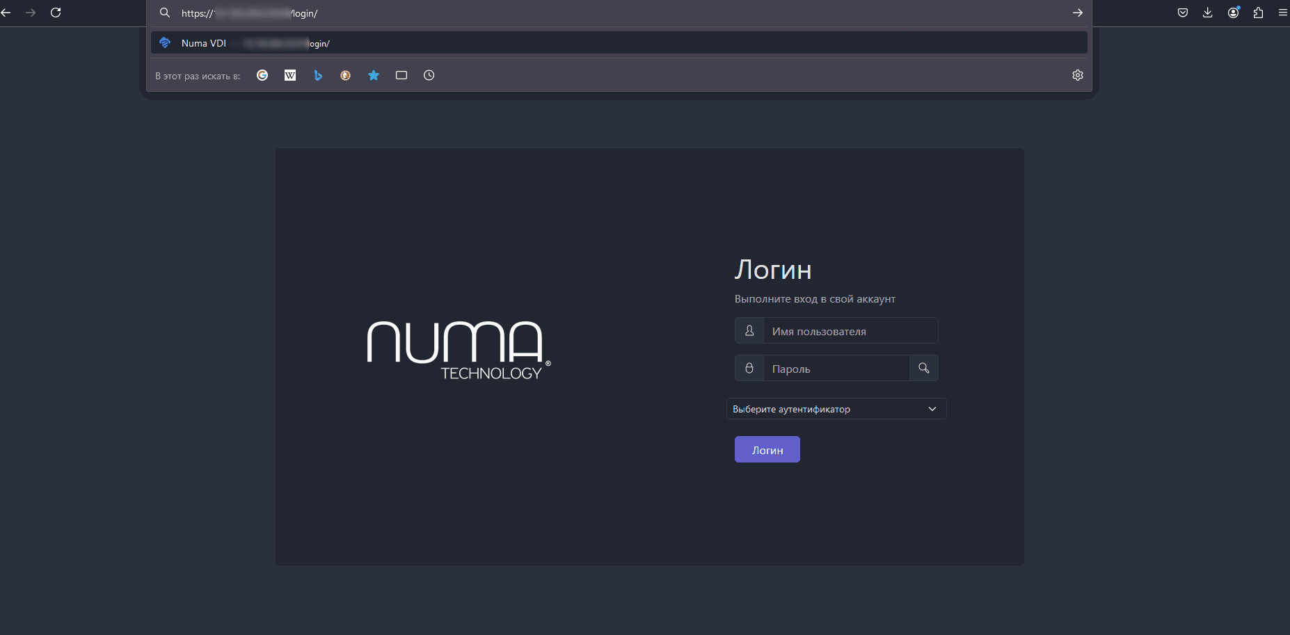 Аутентификатор производит проверку подлинности пользователей и предоставляет им доступ к администрированию Numa VDI и (или) подключению к пользовательским сервисам.