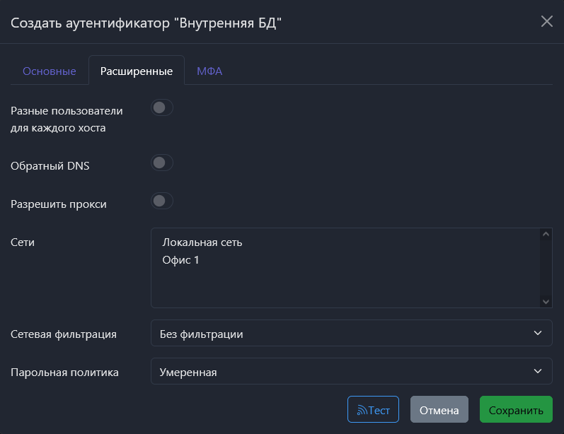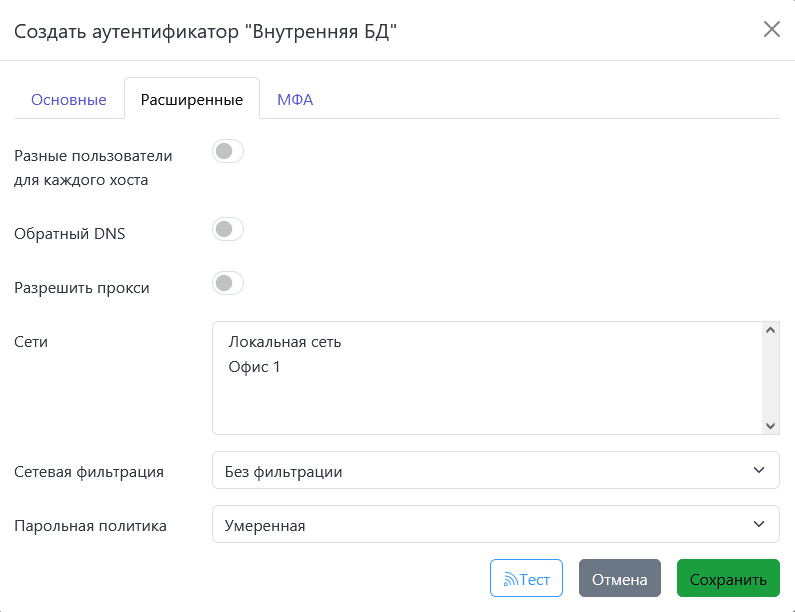 Все типы аутентификаторов, за исключением OAuth2, поддерживают многофакторную аутентификацию (МФА).