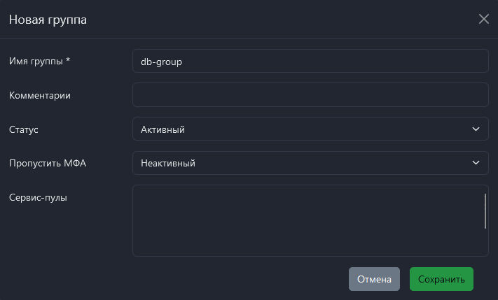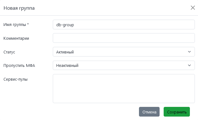 - Сервис-пулы – перечень сервис-пулов, к которым смогут подключаться пользователи создаваемой группы. Доступны для выбора после создания сервис-пула