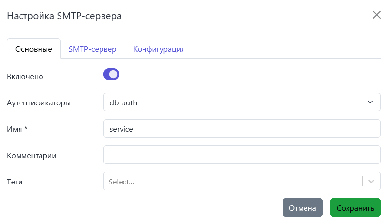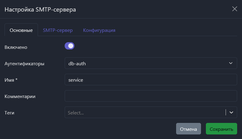 Для создания сервиса настройте SMTP-сервер: