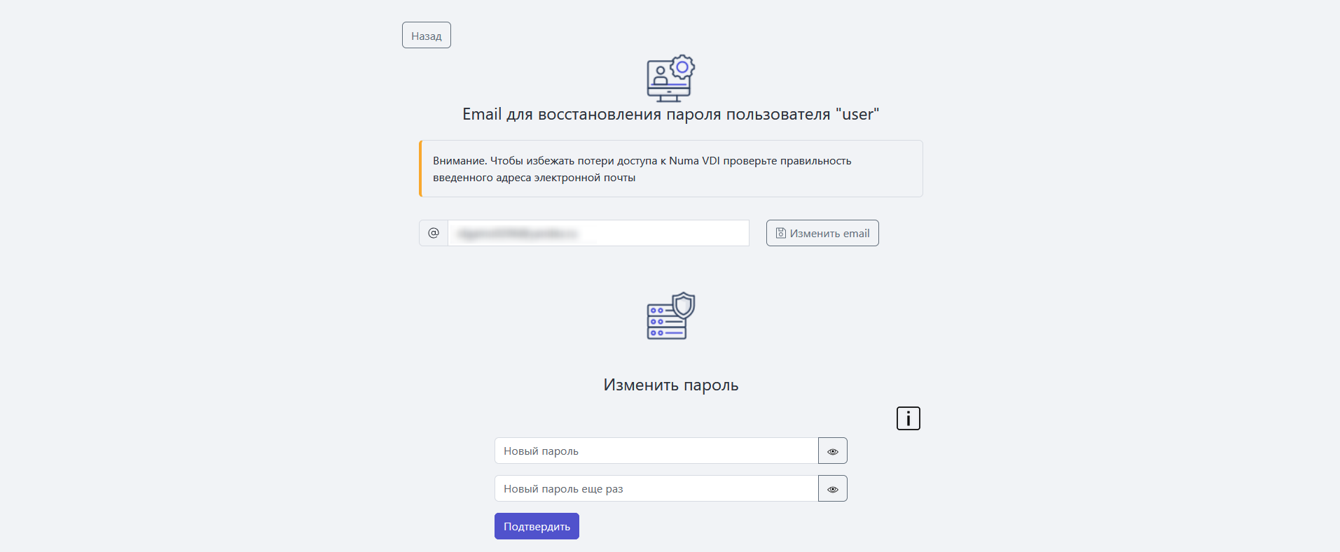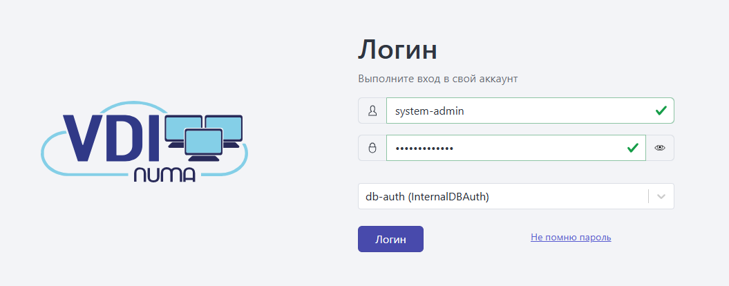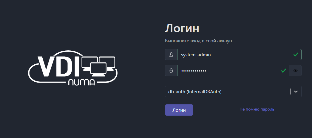 По умолчанию в Numa VDI есть одна предустановленная учётная запись суперпользователя со следующими параметрами: