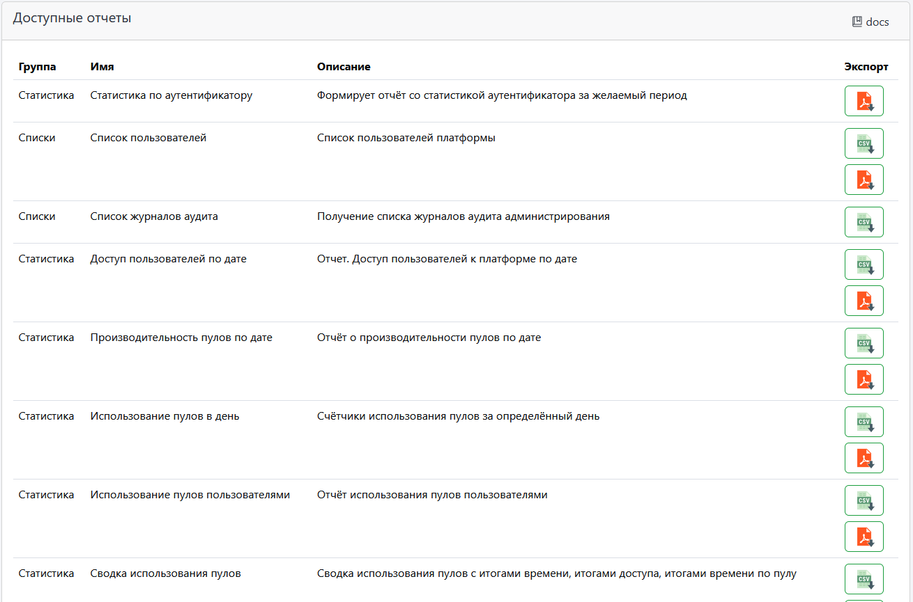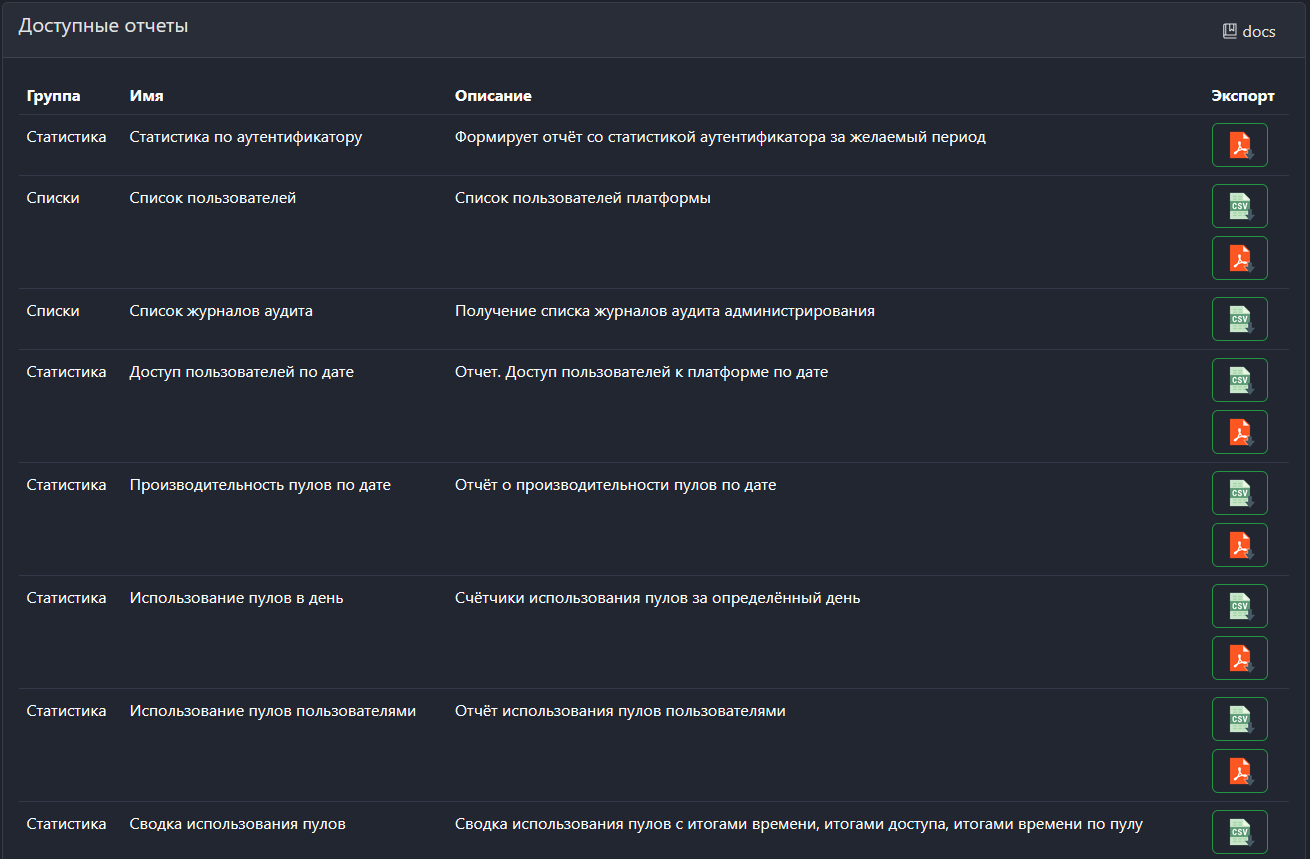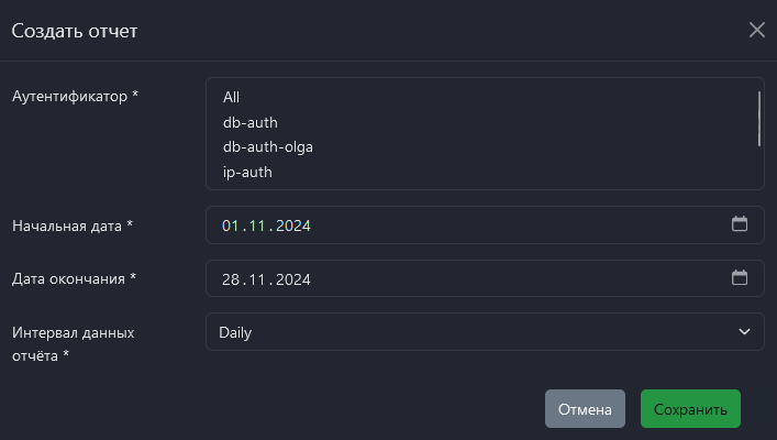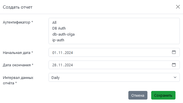 Для выгрузки отчета нажмите на соответствующую кнопку. В зависимости от типа отчета заполните форму и нажмите