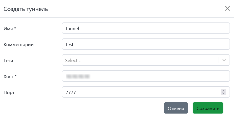 - Хост* – имя хоста или IP-адрес сервера, на котором туннель виден пользователям
