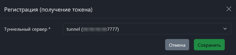Далее необходимо зарегистрировать созданный туннель и получить токен. Для этого: