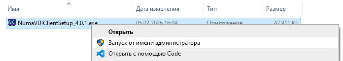 Запустите установочный файл Numa Client от имени администратора.