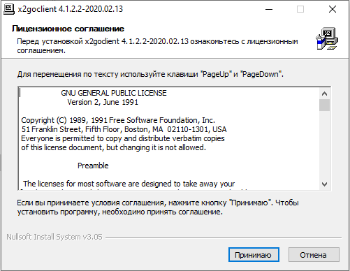 Примите лицензионное соглашение, чтобы установить программу.