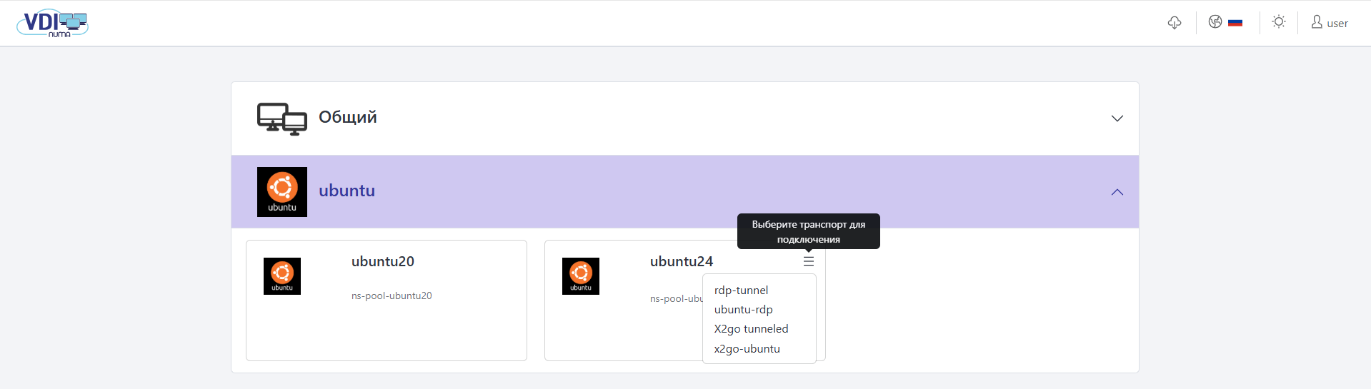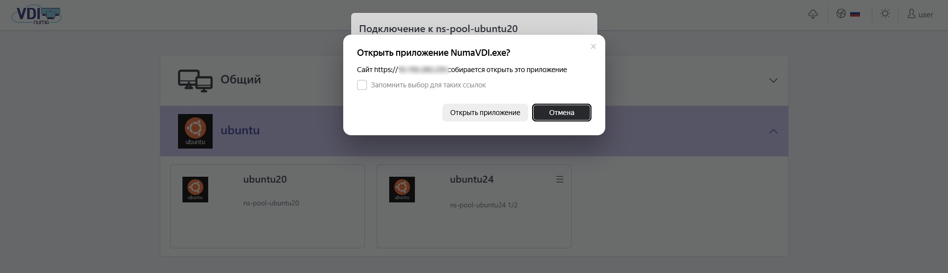 Вход в Numa VDI#