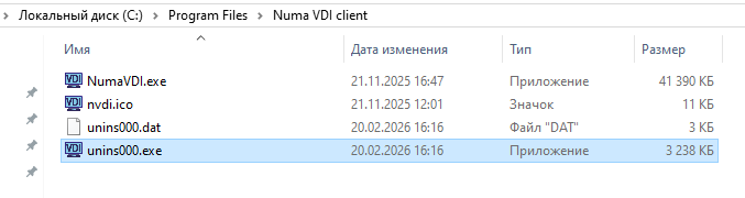 Способ №2. Перейдите в каталог C:\Program Files\Numa VDI client и запустите приложение unins000.exe. Подтвердите удаление.